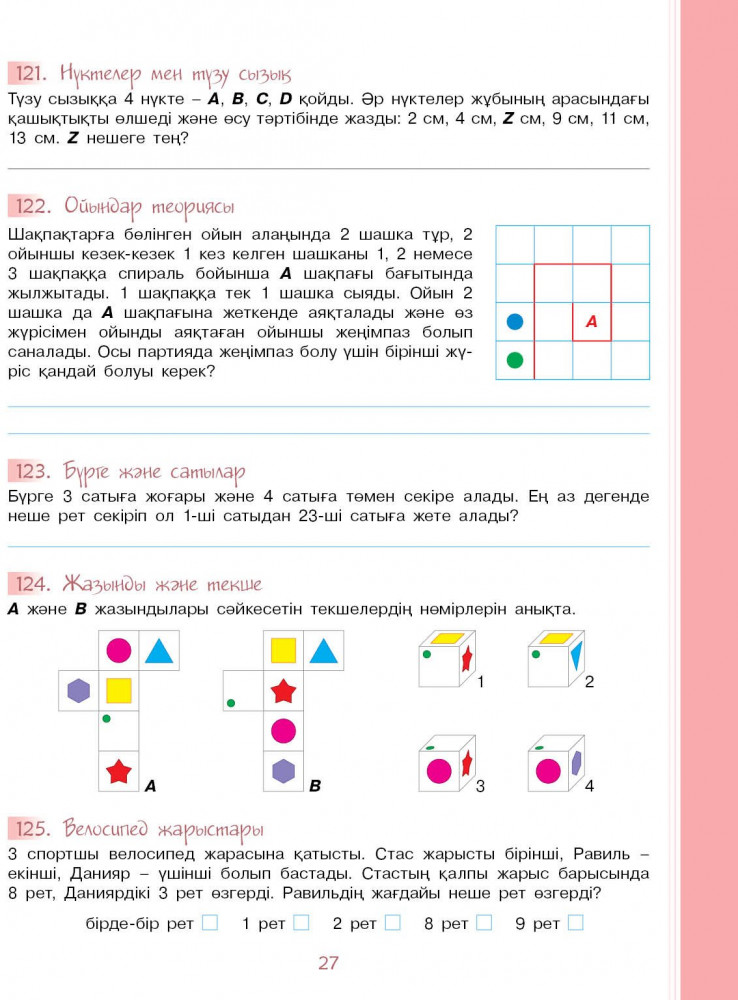 💳 Оплатить за товар можно при получении 🇰🇿 Есть бесплатная доставка по Казахстану от 1 дня 🎁 Копите бонусы с каждой покупки Серия: Рабочие тетради 5 класс «8&8» Логика, 5 сынып оқу құралы 8&8 баспасы шығарған «Бастауыш сыныптардағы логика» курсының жалғасы болып табылады, және тапсырмалар жинағы түрінде болып келеді: логикалық есептер, комбинаторлық есептер, қиял мен өнертапқыштықты талап ететін есептер, математикалық ойындар, көрнекі геометрия бойынша тапсырмалар және т. б. |