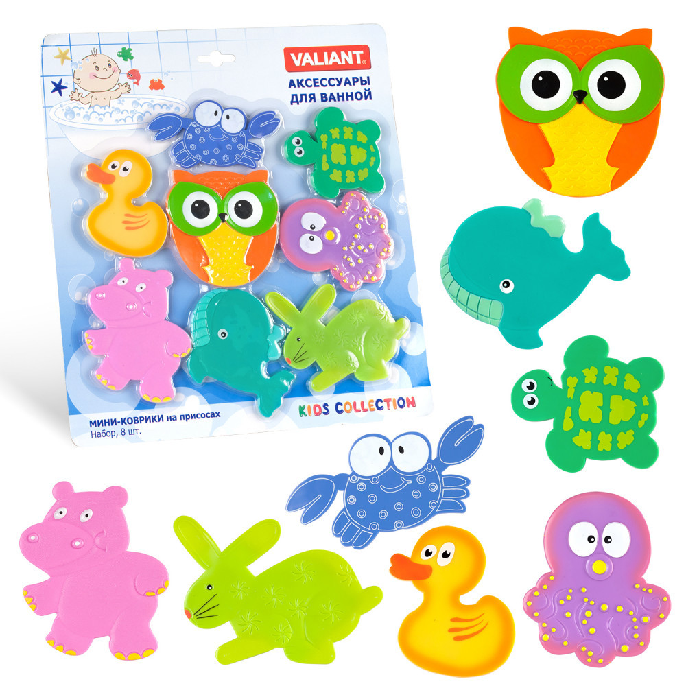 | Valiant Мини-коврик для ванной «Друзья совы» (8 шт), на присосах