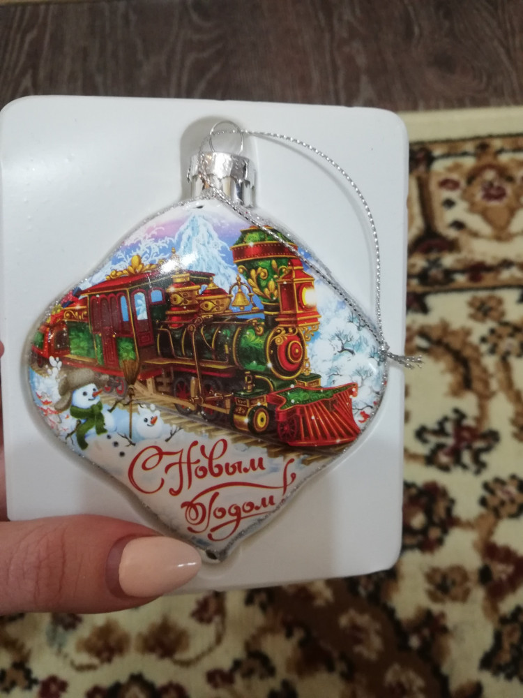 Игрушка очень понравилась. Рисунок нанесён без изъянов. В паре с украшением-ёлочкой из этой же серии на ёлке смотрится красиво.