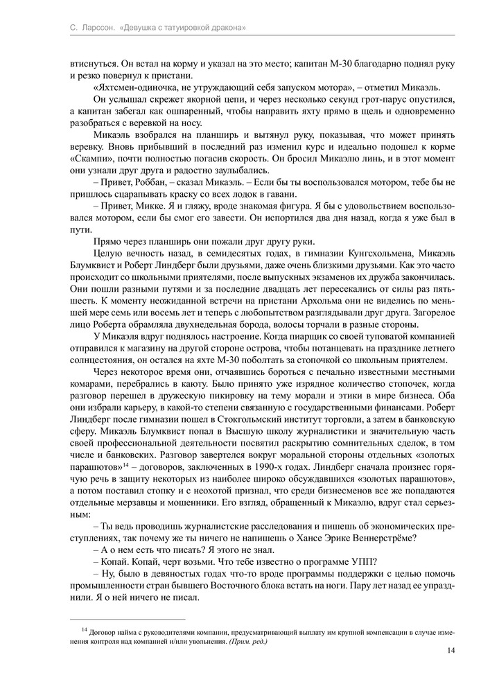 Девушка с татуировкой драконаВ данный момент этот товар отсутствует в продаже. Возможно, у нас найдется аналогичный или похожий товар здесь. Серия: Millennium Сорок лет загадка исчезновения юной родственницы не дает покоя стареющему промышленному магнату, и вот он предпринимает последнюю в своей жизни попытку - поручает розыск журналисту Микаэлю Блумквисту. Тот берется за безнадежное дело больше для того, чтобы отвлечься от собственных неприятностей, но вскоре понимает: проблема даже сложнее, чем кажется на первый взгляд. Как связано давнее происшествие на острове с несколькими убийствами женщин, случившимися в разные годы в разных уголках Швеции? При чем здесь цитаты из Третьей Книги Моисея? И кто, в конце концов, покушался на жизнь самого Микаэля, когда он подошел к разгадке слишком близко? |