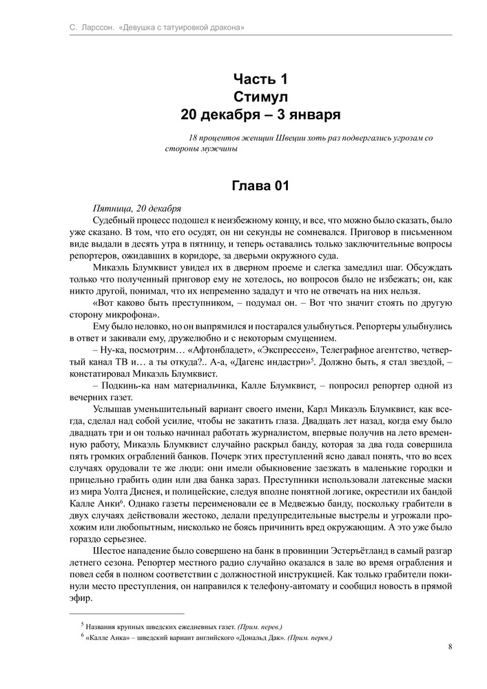 Книга настолько понравилась, что после прочтения чужой, заказала себе в библиотеку. Сильный современный детектив без купюр, но и без откровенной пошлости. В качестве дополнительного знания становится понятным термин "шведская семья".