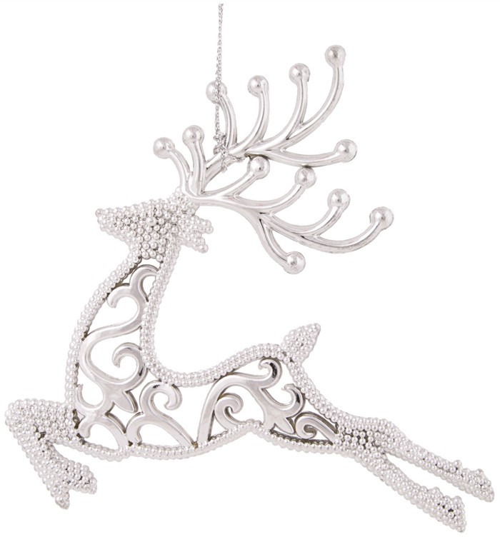 Очень красивое нарядное украшение на елку, серебристый блестящий олень, понравился