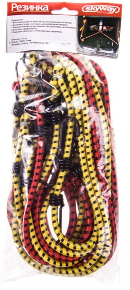Резинки Skyway для крепления багажа используются для фиксации грузов в автомобиле, мотоциклах или скутерах, тем самым сведя к минимуму перемещение груза во время движения. Для производства используется специальный эластичный материал с применением резиновой нити.