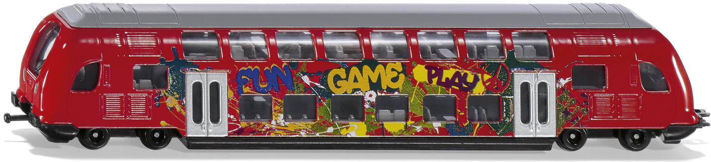 Игрушечный двухэтажный поезд от немецкого производителя Siku непременно порадует любителей игровых моделей. |