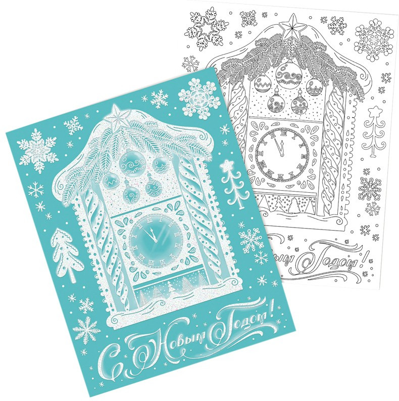 Феникс Презент Новогоднее украшение для окон с радужным глиттером и раскраской «Новогодние часы»-20% +47