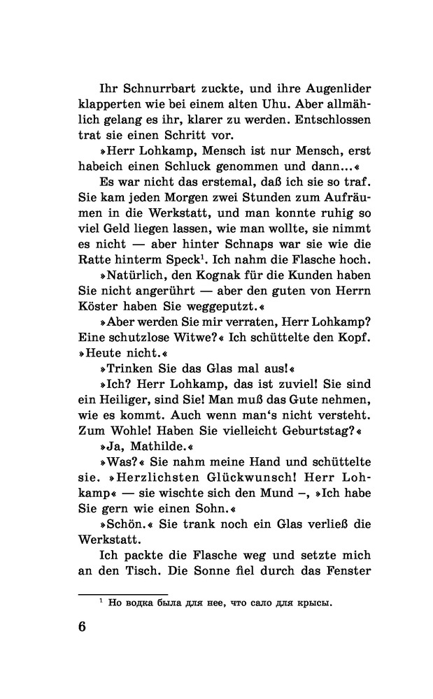 Хорошая недорогая книга для чтения на немецком языке. Взяла этот роман, т.к. на русском его ещё не читала, чтобы было интересно. Приятное оформление, шрифт не мелкий, бумага серая. Хотя указано, что текст для высокого уровня, мне он показался не сложным.