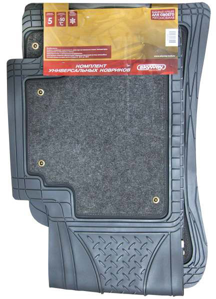 Коврик салона Skyway Cold-2 со съемным ковролином — комплект ковриков из эластичного материала, который не боится резких перепадов температур и сохраняет свою форму в любых условиях. Основа из гибкого водонепроницаемого полиуретана. Съемные накладки из теплого и легкого ковролина делают коврики необычными и дополняют дизайн. Ковролин при желании можно отстегнуть или пристегнуть на клепки.