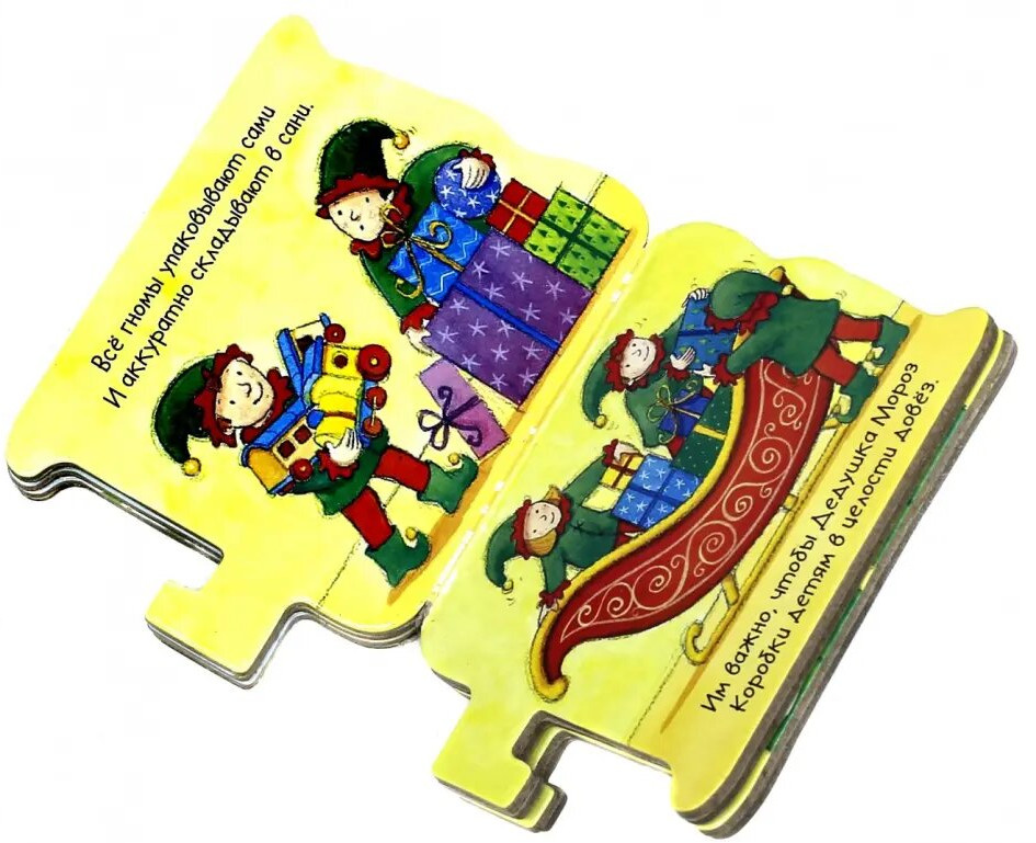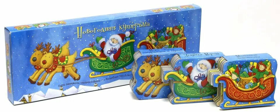 Забавный новогодний подарок для самых маленьких — три книжечки в яркой картонной коробке. На каждой страничке малыш сможет прочитать стихи о предпраздничных хлопотах Деда Мороза, о том, кто помогает ему мастерить подарки, о его верных помощниках — оленях. А необычная вырубка позволит поиграть с книжками после прочтения — ведь их можно соединить друг с другом в паровозик (как пазлы). |