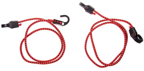 В комплекте 2 резинки для крепления с пластиковым крюком на конце, который обеспечивает надежную фиксацию и предотвращает потери багажа.