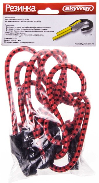 Резинка для крепления багажа Skyway — резинки для крепления груза используются для фиксации грузов в автомобиле, мотоциклах или скутерах, тем самым сведя к минимуму перемещение груза во время движения. Для производства используется специальный эластичный материал с применением резиновой нити.