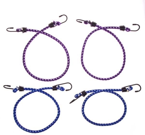 В комплекте 4 резинки для крепления с металлическим крюком на конце, который обеспечивает надежную фиксацию и предотвращает потери багажа.