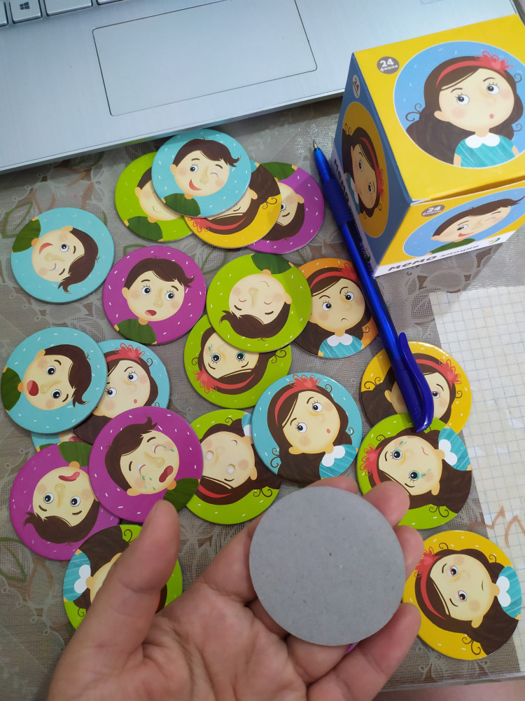 Мемо-игра «Эмоции» состоит из 24 круглых карточек. На них изображены озорной мальчик и длинноволосая девочка. Дети на картинках выражают всевозможные эмоции. На одной иллюстрации девочка сердится, на другой грустит, на следующей она уже смеется. На лице мальчика также можно увидеть различные эмоции. Он ухмыляется, смеется, удивляется. В комплекте имеются по две совершенно одинаковые карточки. Именно такие пары нужно найти малышу.