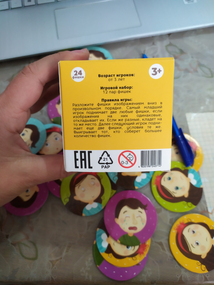 Перед тем как начать игру, карточки следует хорошо перемешать, а затем выложить на поверхность стола изображением вниз. Игрокам по очереди предлагается открывать сразу по две картинки. Если ребенку удалось найти два изображения с одинаковыми эмоциями детей, то он забирает их себе и продолжает ход. Если нет, то возвращает на свое место. В этом случае ход продолжает следующий игрок. Игра завершается после того, когда все карточки будут разобраны. Выигрывает ребенок, у которого оказалось максимальное количество карточек.