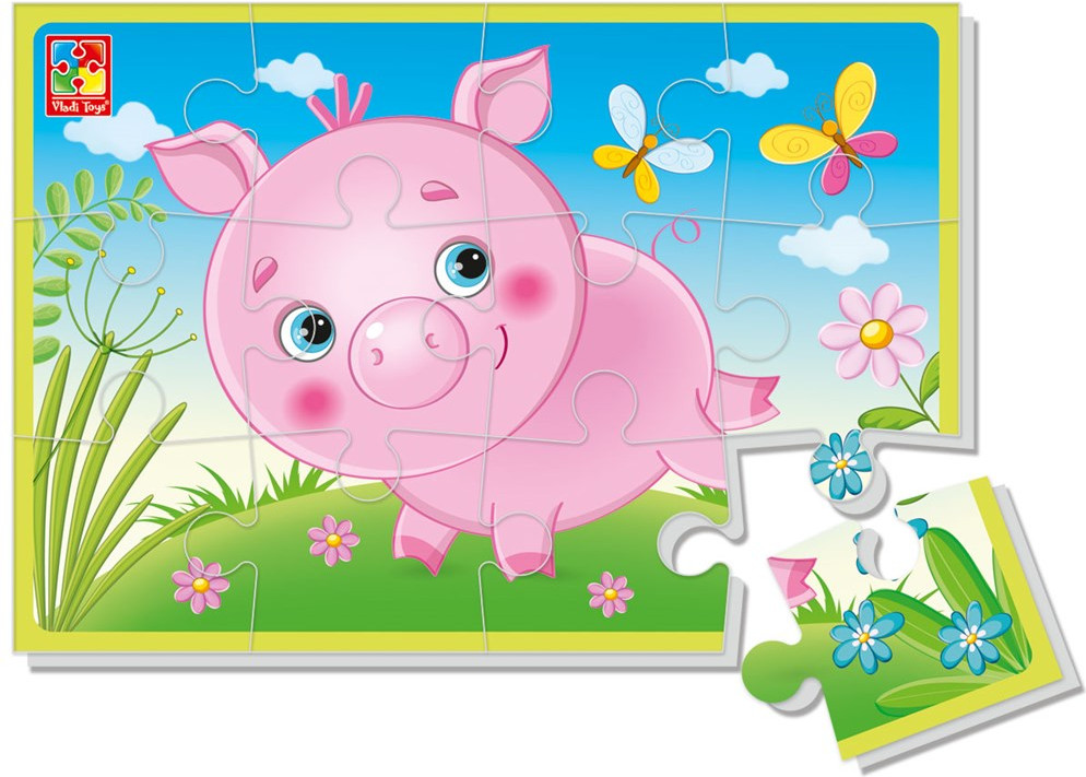 Сложите все детали в правильном порядке, и у вас получится картинка с симпатичным поросенком. Изображение достаточно яркое и контрастное, так что ребенок легко различит его на деталях. Сбор пазлов положительно влияет на зрительную память, внимательность и способность доводить игру до конца.
