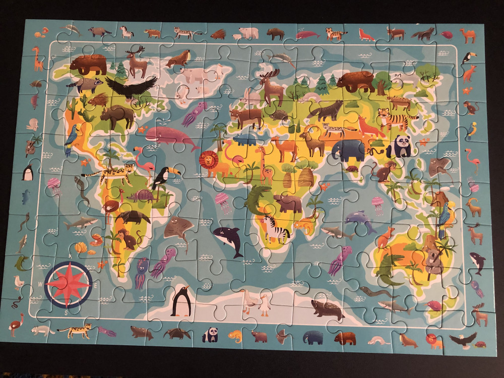 Отличный пазл, рекомендую 👍 Ребенку было интересно собирать и спрашивать про материки и животный мир. Цвета очень насыщенные, упаковка качественная, сам пазл сделан из очень толстого и твердого картона. При сборке не разваливается. Одним словом рекомендую 🙌