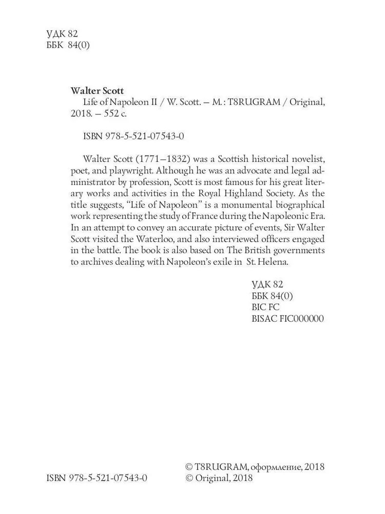 💳 Оплатить за товар можно при получении 🇰🇿 Есть бесплатная доставка по Казахстану 🎁 Копите бонусы с каждой покупки Серия: Original Walter Scott (1771-1832) was a Scottish historical novelist, poet, and playwright. Although he was an advocate and legal administrator by profession, Scott is most famous for his great literary works and activities in the Royal Highland Society. As the title suggests, «Life of Napoleon» is a monumental biographical work representing the study of France during the Napoleonic Era. In an attempt to convey an accurate picture of events, Sir Walter Scott visited the Waterloo, and also interviewed officers engaged in the battle. The book is also based on The British governments to archives dealing with Napoleon’s exile in St. Helena. |