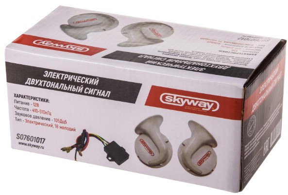 Skyway Сигнал звуковой «Улитка»В данный момент этот товар отсутствует в продаже. Возможно, у нас найдется аналогичный или похожий товар здесь. Сигнал звуковой — электрический звуковой сигнал в форме улитки. Уровень звукового давления достигает 105 Дцб. Такой громкости достаточно, чтобы обозначить себя на дороге и повысить безопасность. Звуковой сигнал с низким и высоким тоном идеально подходит для автомобилей с напряжением 12В. Установите сигнал в штатное место или как дополнительный тюнинг автомобиля. |