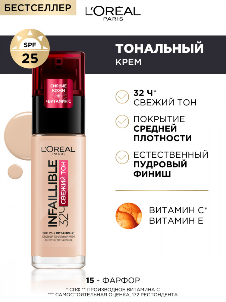 L'Oreal Paris Стойкий тональный крем «Infaillible. Свежий тон», оттенок 015