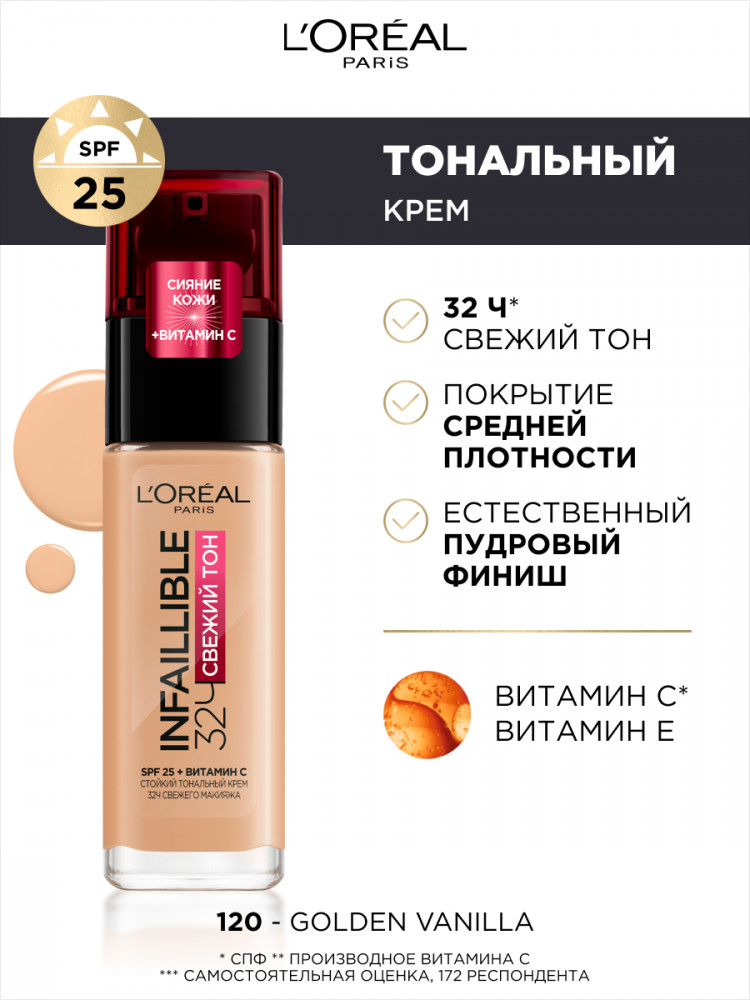 L'Oreal Paris Стойкий тональный крем «Infaillible. Свежий тон», оттенок 120