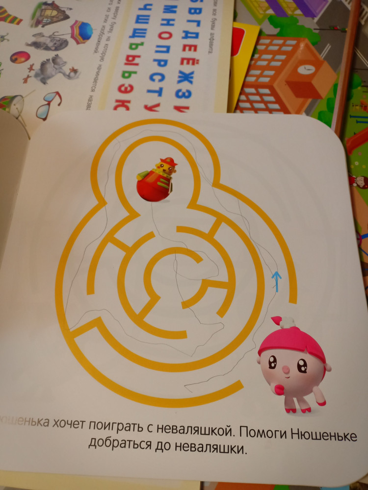 Действительно, лабиринт для начинающих. Малышка 2-х лет с интересом помогала любимым малышарикам добраться до игрушек.