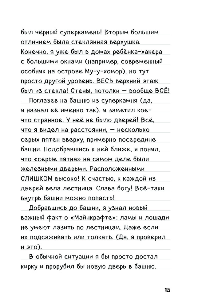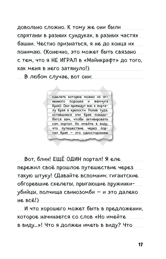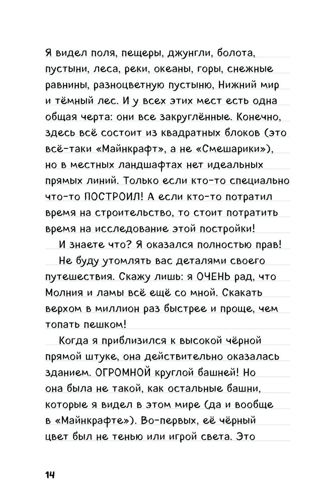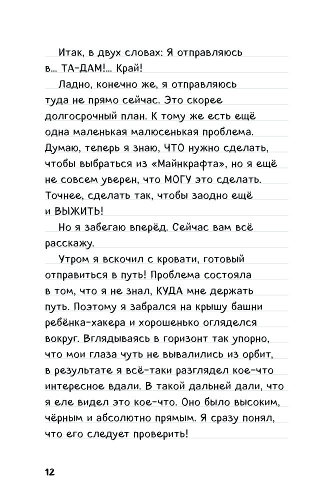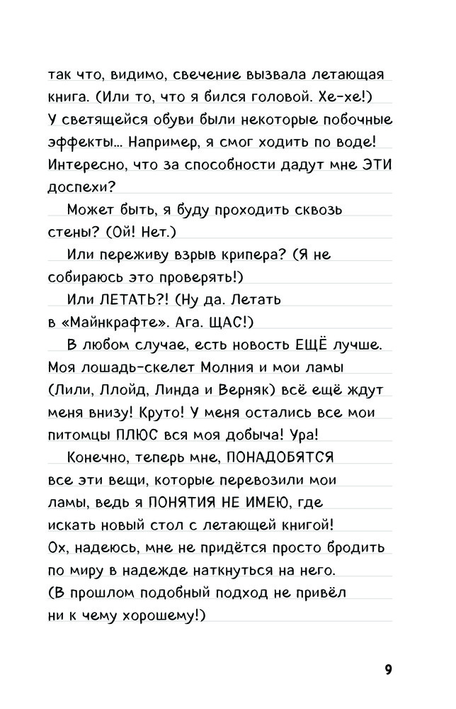 Купила все 12 книг данной серии. Ребенку 9лет прочитал каждую за 2дня. На одном дыхании. Каждая книга это продолжение предыдущей. Желательно брать по очереди. Веселые и интересные книги. Есть вставки чистых фрагментов где ребенок может выполнить задание указанное в книге. А именно изобразить того или иного персонажа. Для родителей тоже интересно будет почитать и стать на одной волне с детьми которые увлечены данной компьютерной игрой, поверьте и вам понравится.