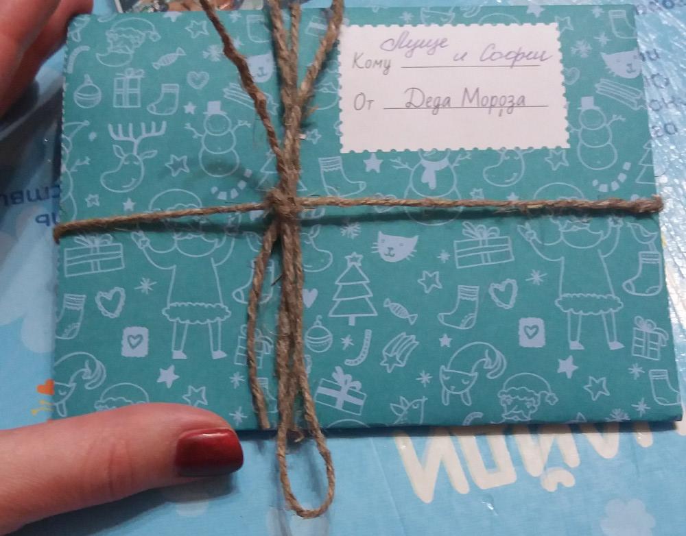 Оооочень удобно, оформление прекрасно! Единственное, уже подписано: от Деда Мороза. Надо придумать историю, но мы вплели в свой сюжет, не акцентируя на подписи) Отлично на подарок!