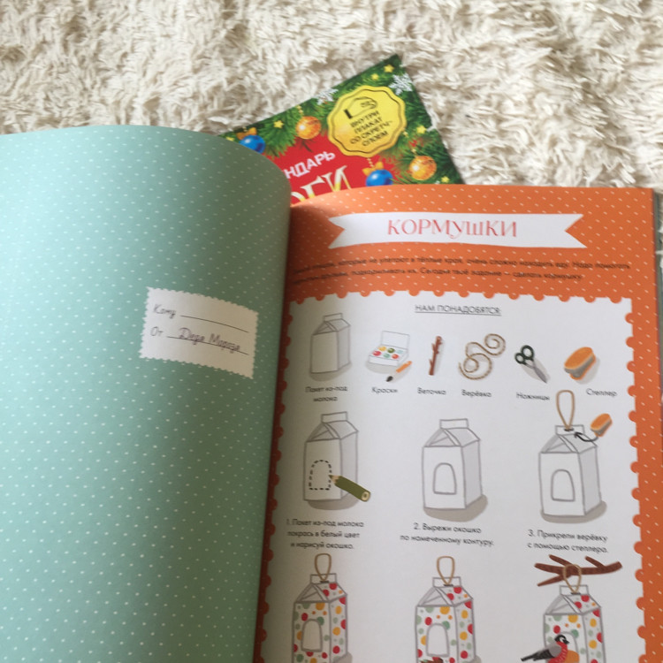 Отличный адвент Календарь. Очень довольны покупкой. Я листы вырываю и потом аккуратно по линии вырезаю. Удобно, что можно самим выбирать что в какой день выполнять. В первый день написали письмо деду морозу :-)