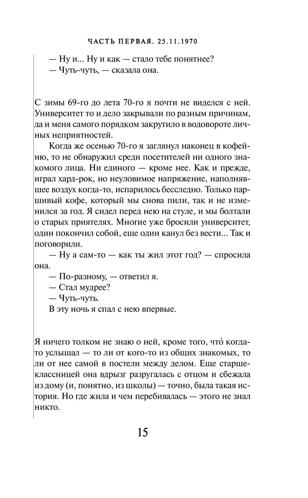 Книга пришла быстро и в хорошем состоянии, нигде не помято, обложка и страницы приятные на ощупь. Читается легко, но Произведение показалось затянутым, много воды даже можно сказать, до этого я читала «кафку на пляже» и эта книга показалась мне разочаровывающей по сравнению с кафкой. Концовка книги мне понравилась больше всего, но в отличии от начала прозы концовка не описывается до каждой мелочи, и продолжительностью только на пару страниц. (Многим эта книга показалась скучной и разочаровывающей, но практически все прозы Мураками безумно интересные, очень советую «Norwegian wood”, “1Q84” и “ Kafka on the shore” - это мои любимые его прозы, очень захватывают 👉👈)