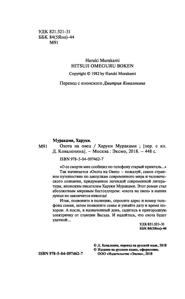 Охота на овец-20% +124 интересный сюжет легкий слог мрачная атмосфера красивая обложка запутанный сюжет затянутость