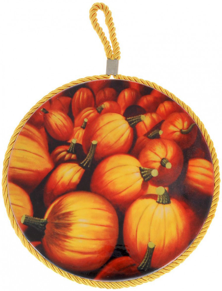 Феникс Презент Подставка под горячее «Тыква»В данный момент этот товар отсутствует в продаже. Возможно, у нас найдется аналогичный или похожий товар здесь. Подставка под горячее «Тыква» изготовлена из высококачественной керамики. Специальное пробковое основание подставки защитит вашу мебель от царапин. Изделие оформлено красочным изображением тыквы. Такая подставка поможет защитить поверхность стола от высоких температур. По краю подставка оформлена декоративным шнурком, сверху образующим петельку, благодаря которой подставку можно повесить на стену в качестве интересного декоративного элемента. Яркий дизайн позволит добавить красок в интерьер кухни. |