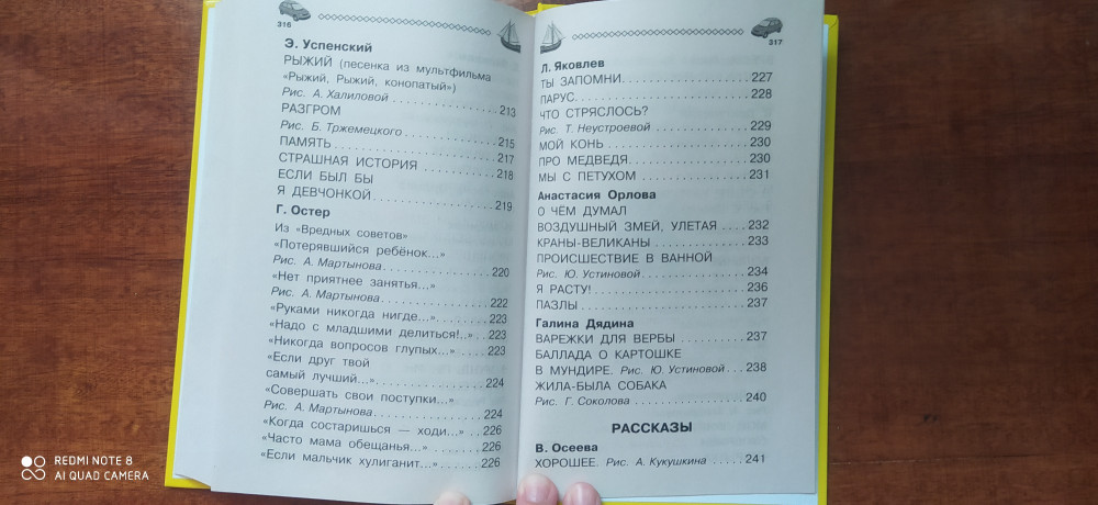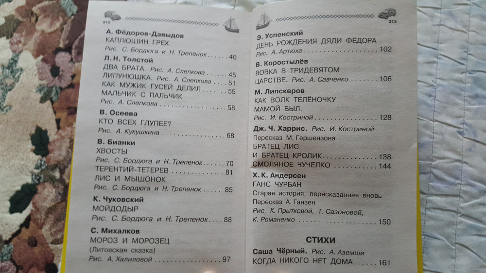 Книжка интересная. Но картинки чёрно-белые, не цветные, зато естественные, без всяких модных теперь стилизации (что довольно некрасиво). Смотрятся картинки очень красиво, хоть и чёрно-белые. Содержание книжки увлекательное, есть и сказки, и стишки (часто забавные).