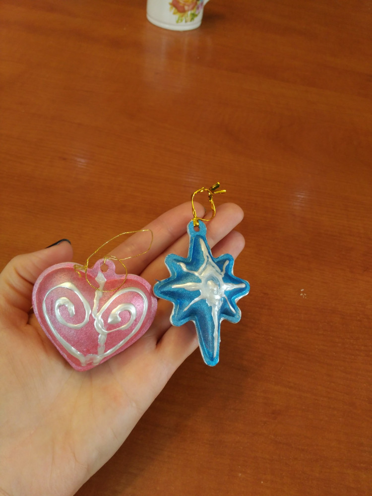Покупала для 5 летней племянницы. Игрушка ей очень понравилась, т.к. она девочка творческая, любит рисовать. Сразу открыла и раскрасила все игрушки. Очень довольна подарком. Краски действительно перламутровые, контур жемчужный не растекается, все как на картинке, очень красиво получается. Доставили быстро. Единственное замечание магазину, в описании товара не указаны размеры игрушек. Я наша на другом сайте и была готова к тому, что игрушки небольшие. Приведу размеры, может кому-то пригодится: •Домик: 6,1 х 6,6 х 2,7 см. •Конфета: 3,1 х 7,2 х 2,6 см. •Колокольчик: 5,5 х 6,5 х 3,9 см. •Ключик: 3,8 х 6,8 х 1,5 см. •Звездочка: 7,7 х 5,5 х 2,6 см. •Сердечко: 6 х 5,5 х 3,3 см.