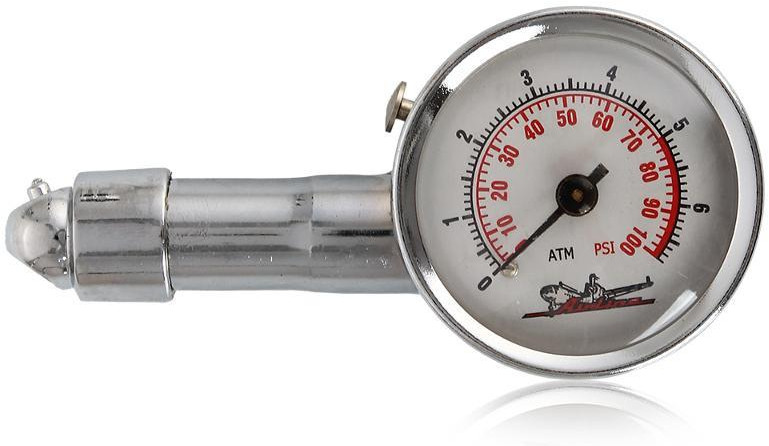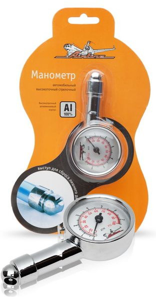 Компактный прибор, используется для измерения давления в шинах автомобиля. Манометр оснащен стрелками, корпус изготовлен из прочного металла.