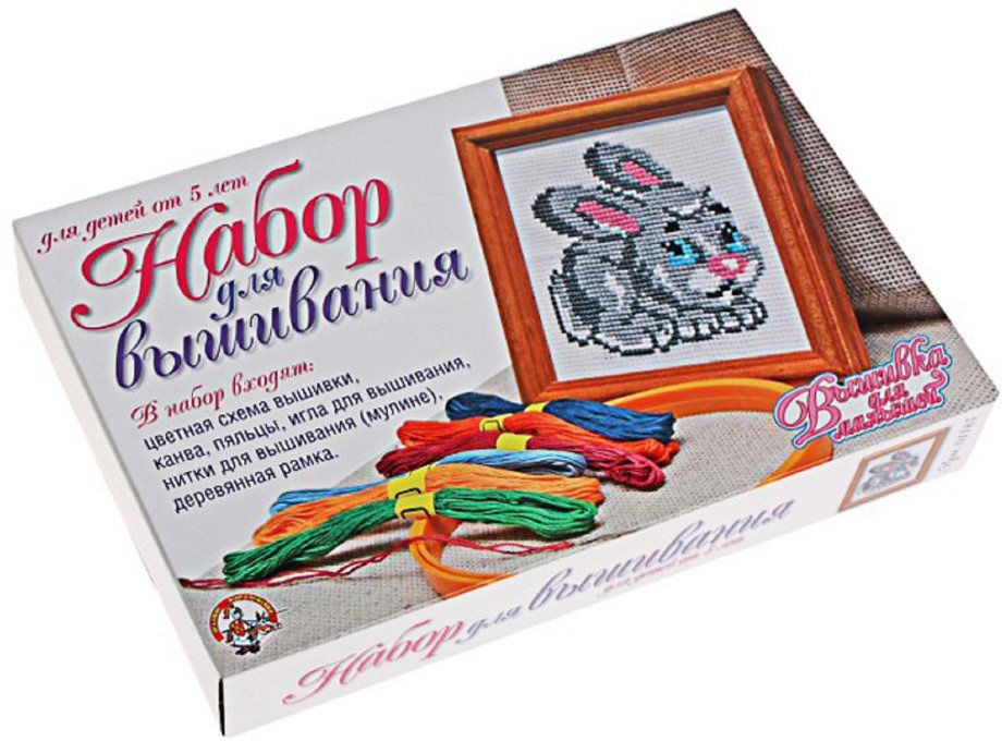 Очаровательный маленький зайчик на картинке сможет привлечь внимание многих детей. Вышить такого крошку захотят не только девочки, но и некоторые мальчики. Такой вид творчества давно признан одним из самых эффективных методов развития моторики и внимательности, а также аккуратности. Благодаря тому, что картинка имеет сравнительно небольшие размеры, на завершение работы потребуется не очень много времени, что очень важно для детей младшего возраста, которым очень хочется сразу увидеть результат. Готовую картинку можно повесить в рамку, которая входит в комплект, после чего можно украсить стену первой вышивкой ребенка.