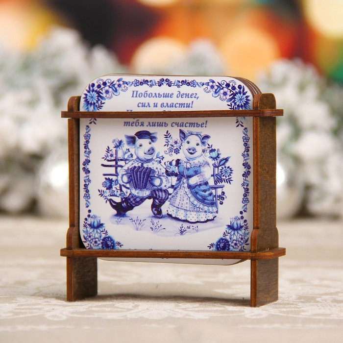 Набор подставок под горячее «Свинки. Гжель» (4 шт.)