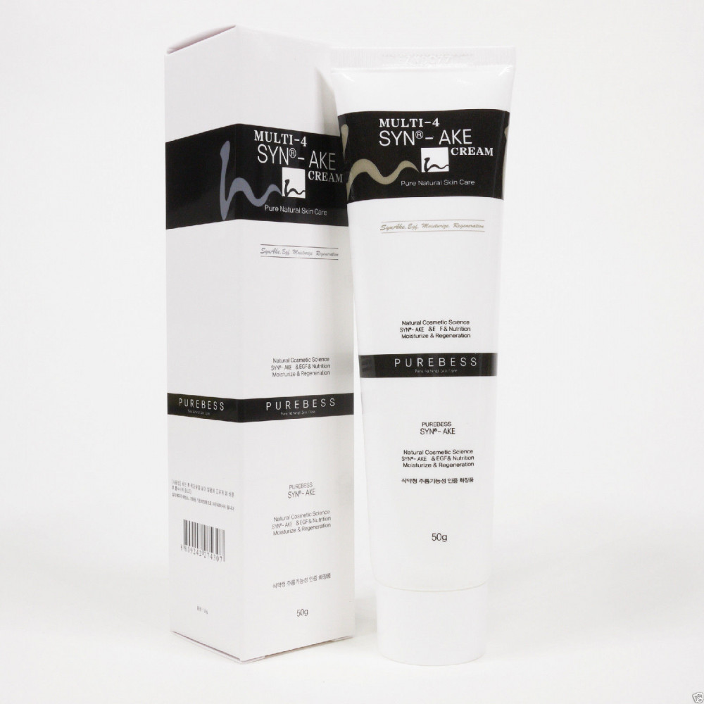 Syn-Ake — это синтетический трипептид, созданный швейцарской компанией Пентафарм, его действие сходно с действием змеиного яда храмовой гадюки. Он ингибирует передачу нервных импульсов и блокирует мышечные сокращения, расслабляя таким образом лицевую мускулатуру и разглаживая мимические морщины. Действие крема с этим пептидом по своему принципу аналогично механизму действия инъекций ботокса.