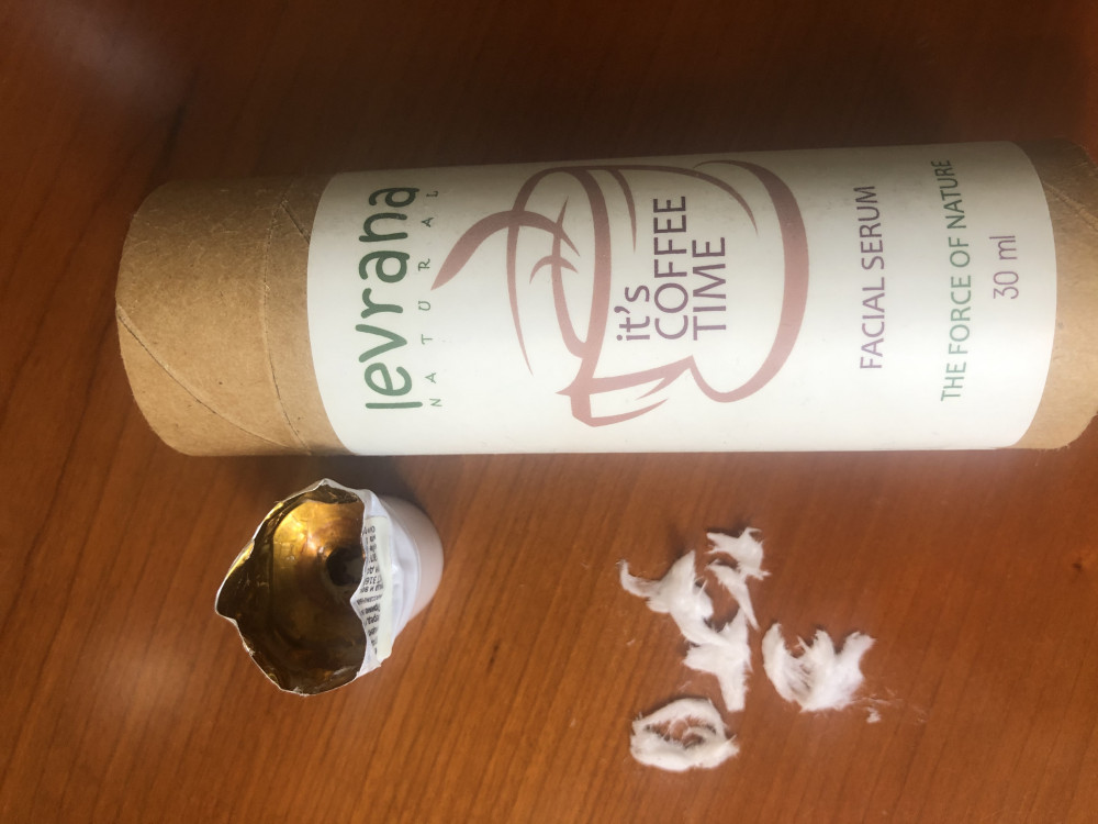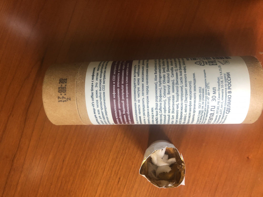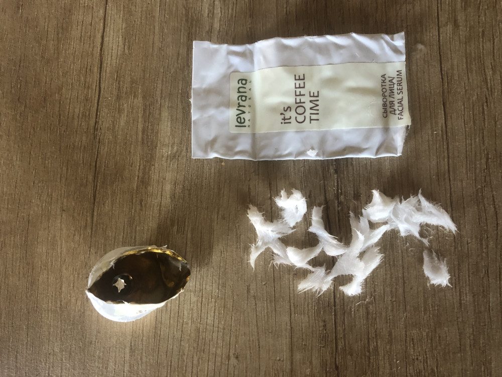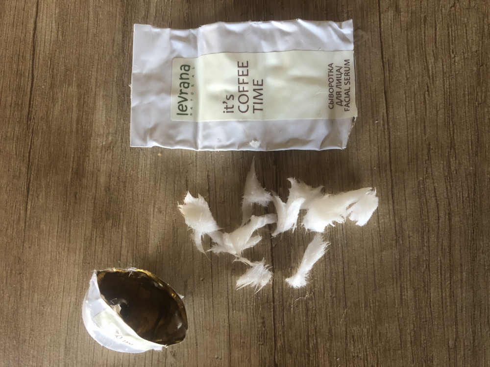 Купила сыворотку в начале августа 2020 года, срок годности виден на упаковке до 03.2022. Пользовалась до конца сентября, показалась она мне подозрительно жидкой. Когда сыворотка закончилась, я решила разрезать тюбик и посмотреть внутри, потому что у горлышка тюбика было какое-то уплотнение. И действительно внутри оказался приличный кусок какой-то субстанции, очень похожей на вату((( Вот теперь думаю, чем я мазалась? Водой что ли, если сухая часть сыворотки осталась неиспользованной?😂