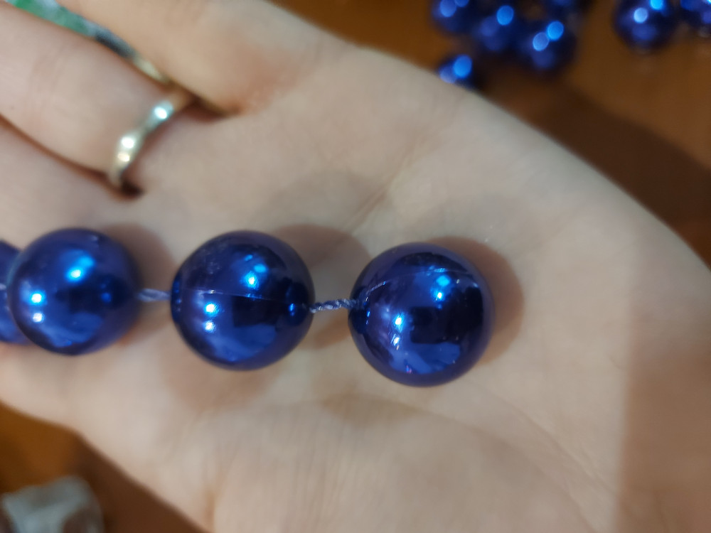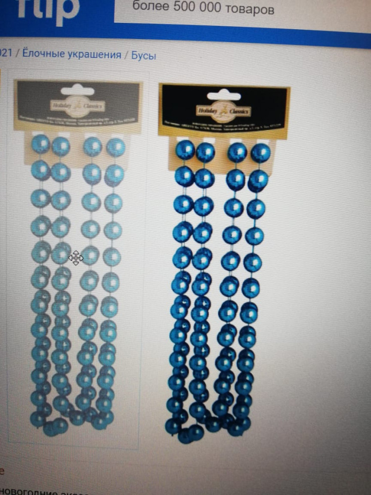 Получила бусы. Тяжелые, без потертостей, качество хорошее, но цвет абсолютно не тот, что на картинке. Мне были нужны именно светло-синие бусы, а по факту они фиолетовые. Буду оформлять возврат. На фото - сайт и полученные бусы. Снимаю звезду за несоответствие