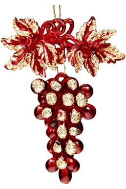 Небьющееся елочное украшение «Виноград». Резной узор на листьях и сами ягоды частично декорированы золотистой обсыпкой. Красивая, изящная игрушка.