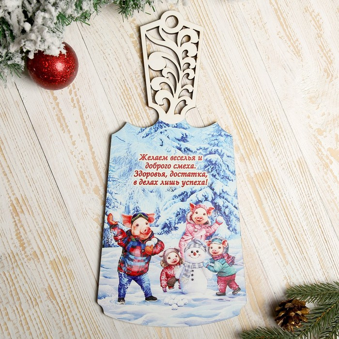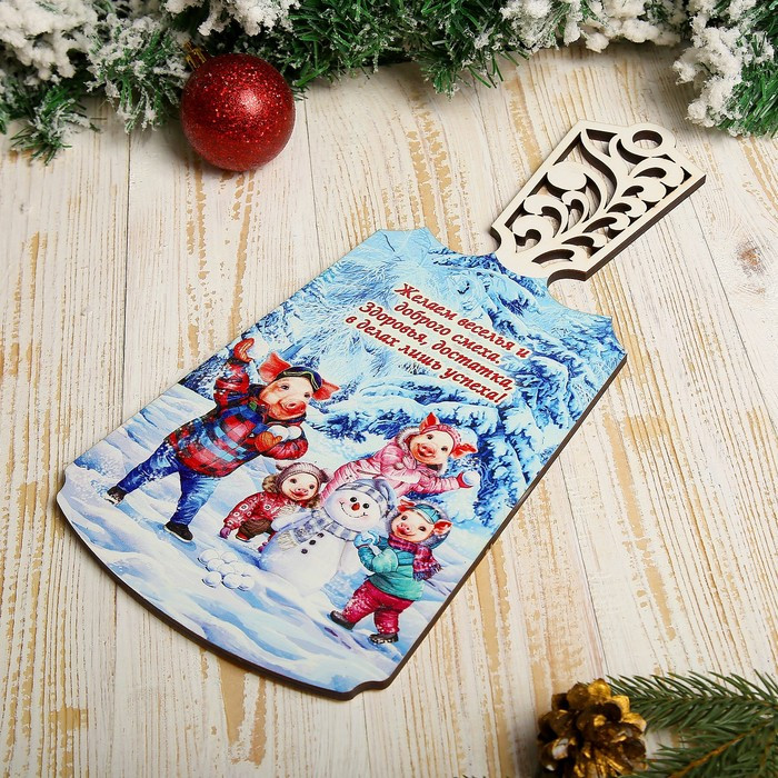 Доска разделочная «Хрюши играют в снежки» - Фото 1