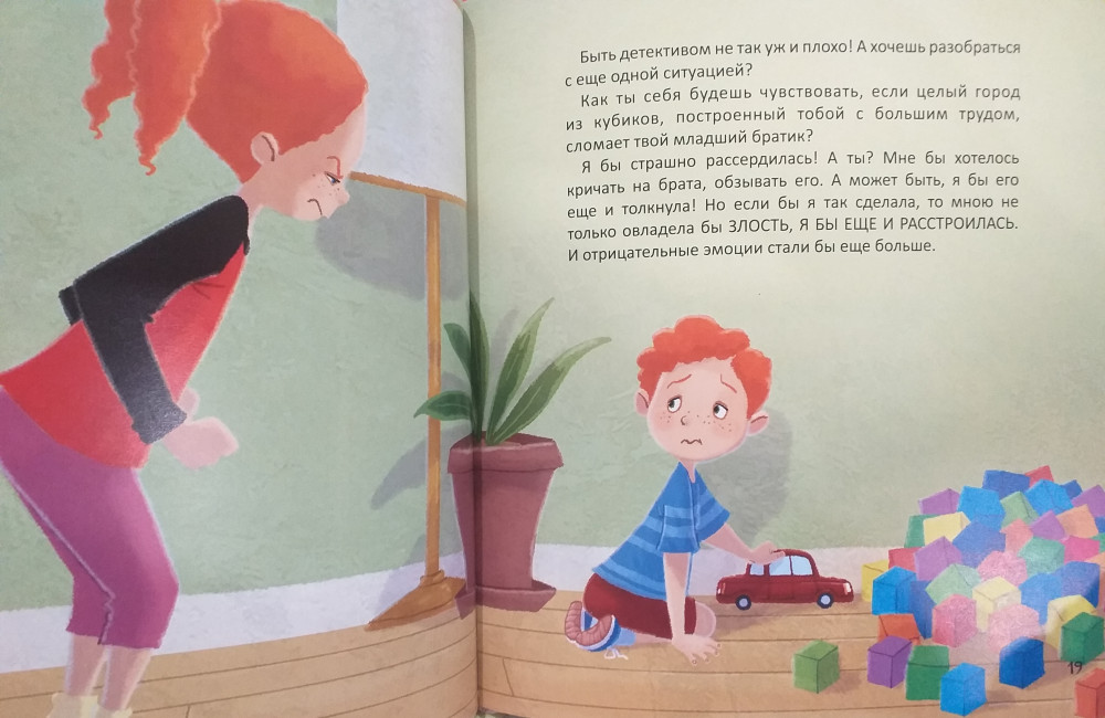Очень понравилась, эта девочка на обложке сразу привлекла, дочка тоже часто бывает с таким лицом. В книге хорошо и просто объясняется как справляться с возникающими негативными эмоциями. Понравилась подача в виде игры в детективов, которые могут решить любые проблемы. Стараемся теперь использовать методы из книги всей семьей:)