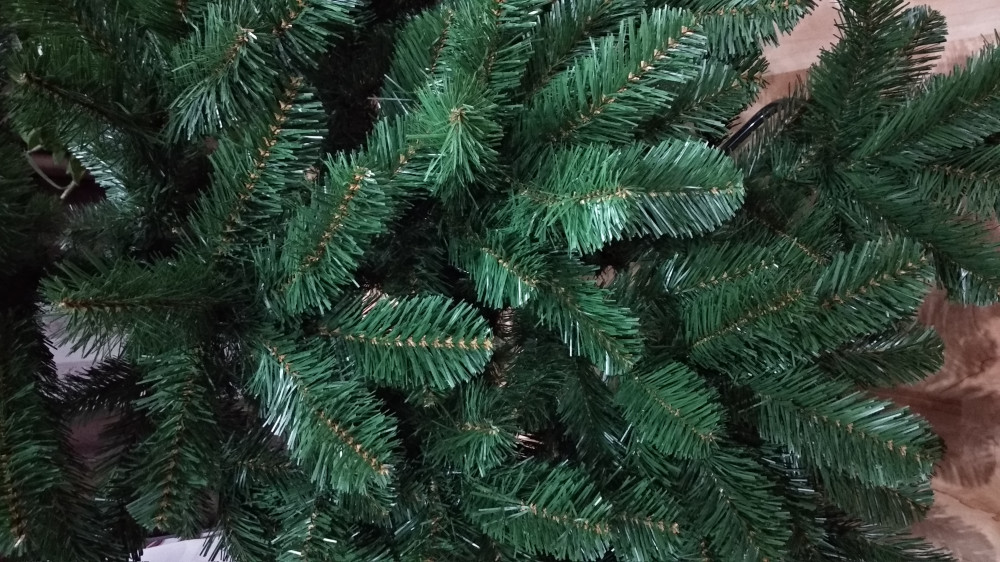 Хорошая ёлочка, мягкая, пушистая, без запаха. Единственно, что мне не очень - это просто вставляемые и никак не закрепляемые ветки. Кот, пытаясь "украсить" собой ёлку, постоянно раскидывает ветки.