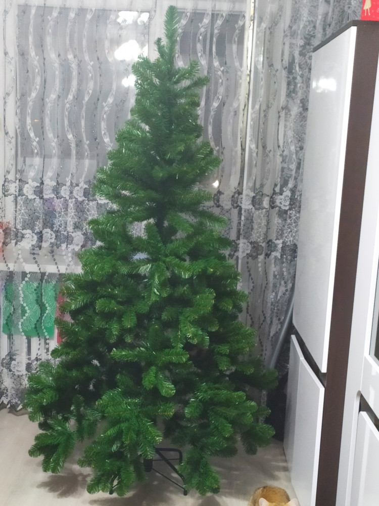 Сегодня получила эту елочку, мне она понравилась. Практически не осыпается, зеленый насыщенный цвет, оптимальная высота(150см), нижний ярус не очень большого диаметра, поэтому она не громоздкая, нижние ветви практически полностью закрывают подставку. Попробовала собрать и распушить пару веток - должна получиться довольно пушистой!Ствол обмотан таким же материалом, как и сами ветки, так что никакой голой проволоки итп. Спасибо производителю и Флип!