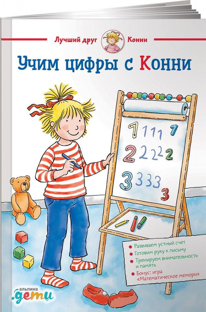 Серия охватывают все жизненные навыки, с которыми ребенок встречается во время взросления от 3 до 14 лет. Ассоциируя себя с главной героиней, малыш проживает ее историю, учится и познает мир. Первые шаги в математике совсем не страшны, если делать их с друзьями. Вместе с Конни учимся считать и писать от 1 до 10. Раскраски, рисунки по точкам и лабиринты помогут подготовить руку малыша к письму, развить внимание и логическое мышление. Бонус — игра «Математическое мемори». |
