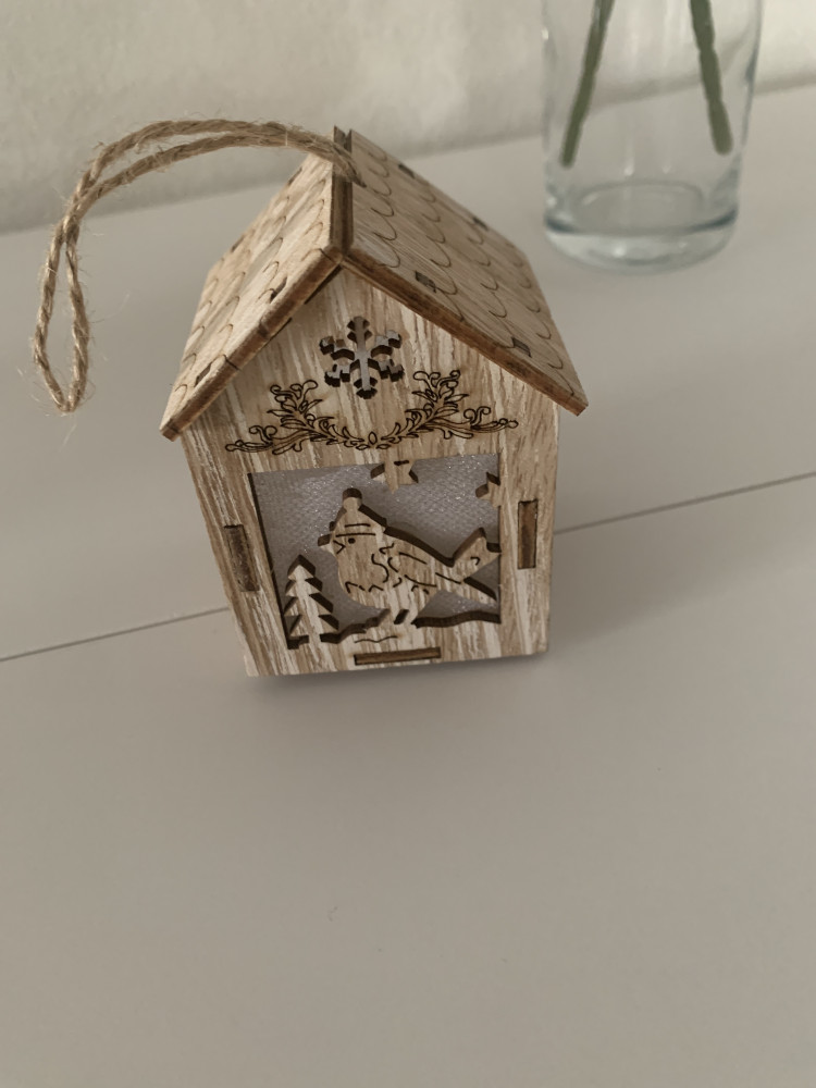 Домик супер! Аккуратный, хорошо будет смотреться на елке, можно повесить или поставить куда угодно. Создает ощущение уюта и праздника.