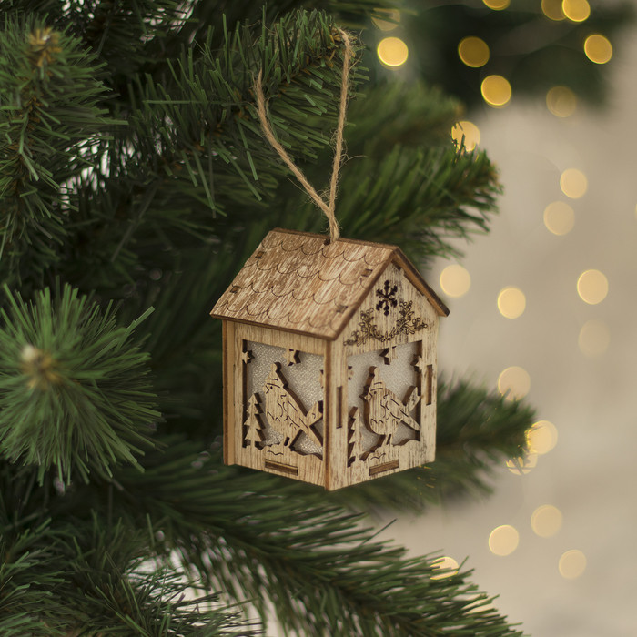 Luazon Подвеска световая «Домик с птицей»-25% +54 красивый дизайн тёплый свет мерцает хорошее качество для ёлки