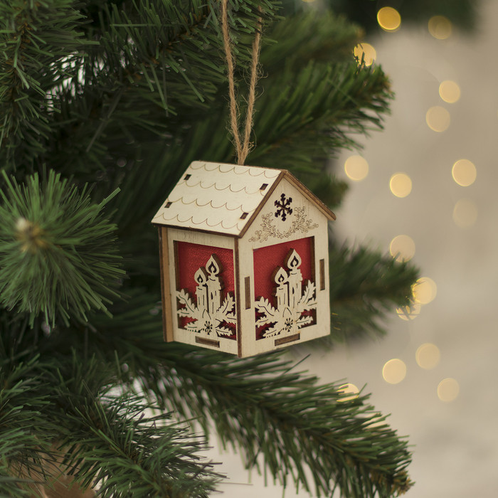 красивое елочное украшение светится в меру легкое по массе, можно вешать на елку, а после праздника - на кухне, как символ домашнего очага.