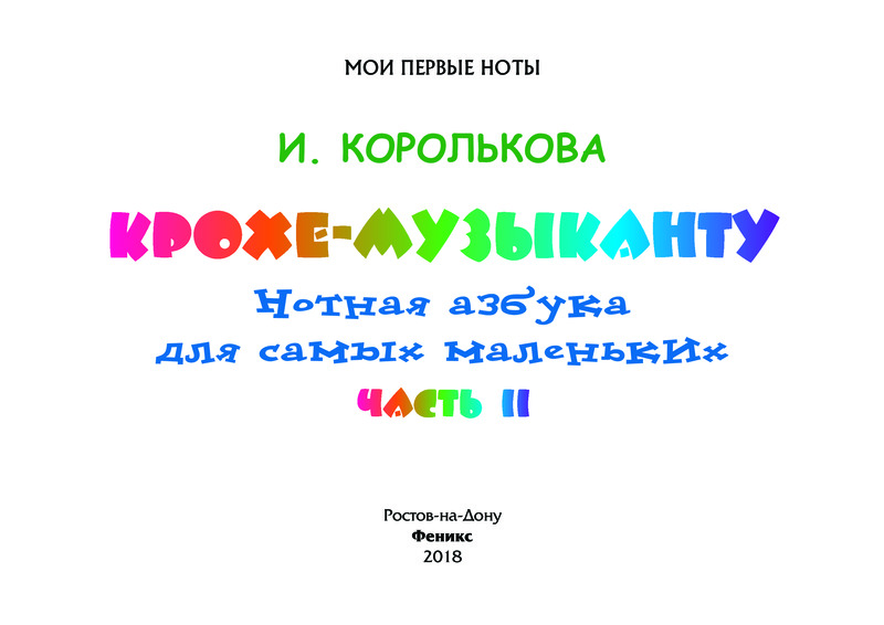 | Крохе-музыканту. Нотная азбука для самых маленьких. Часть 2 Ирина Станиславовна Королькова