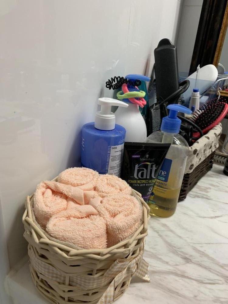 Оставила себе, так как когда вскрыла от полотенец неприятный запах исходил, хорошо открыла, а то конфуз вышел бы, подари я эту корзинку. Заказывала разных цветов, из всех самые презентабельные наборы зелёного и бежевого цветов. Кремовый как грязно-белый выглядит в реальности. Другие корзинки с непрокрашенными местами были, отказалась. Сами корзинки хлюпкие и с них сыпется мусор, пользоваться осторожно, в чисто декоративных целях-поставил и забыл, иначе при активном использовании рассыпятся. Может мне такие попались.