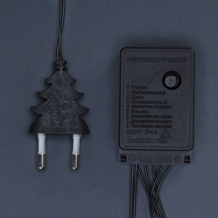 Второй конец гирлянды имеет розетку для соединения с другой гирляндой. Но это, наверное, требует заглушки (для безопасности детей).